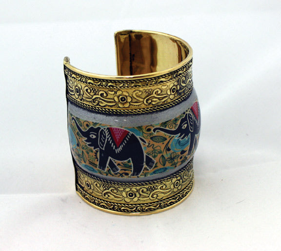 Painted Brass Cuff: Elephants