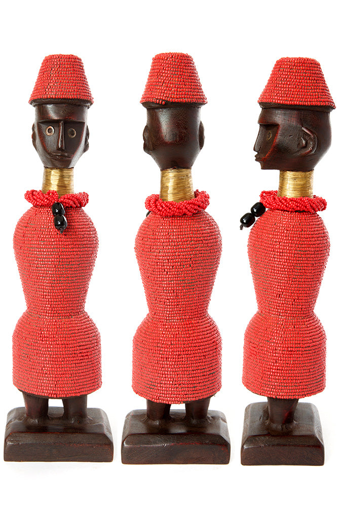 Traditionally, Namji dolls were crafted by artisans in northern Cameroon to serve as fertility dolls. Carried by young girls to encourage mothering instincts and by women hoping to conceive, Namji dolls consisted of a wooden figure surrounded in beads.