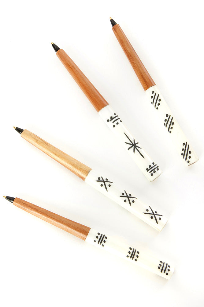 Sold singly. Each pen accepts Bic Stick refills. Because this is a handcrafted piece, each will vary slightly.