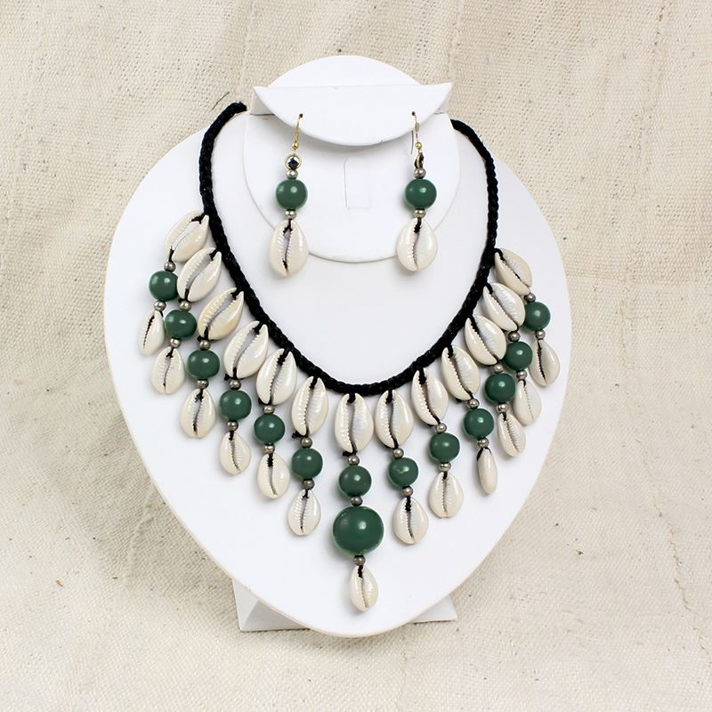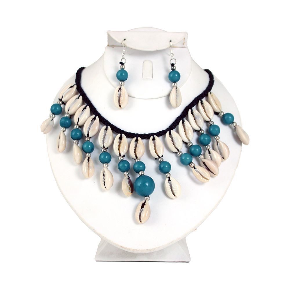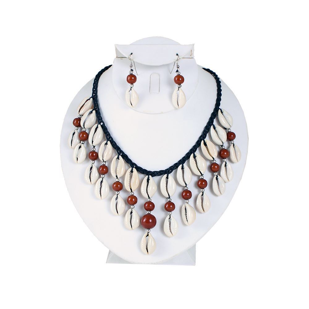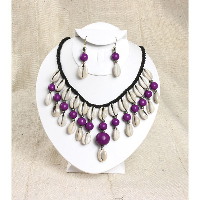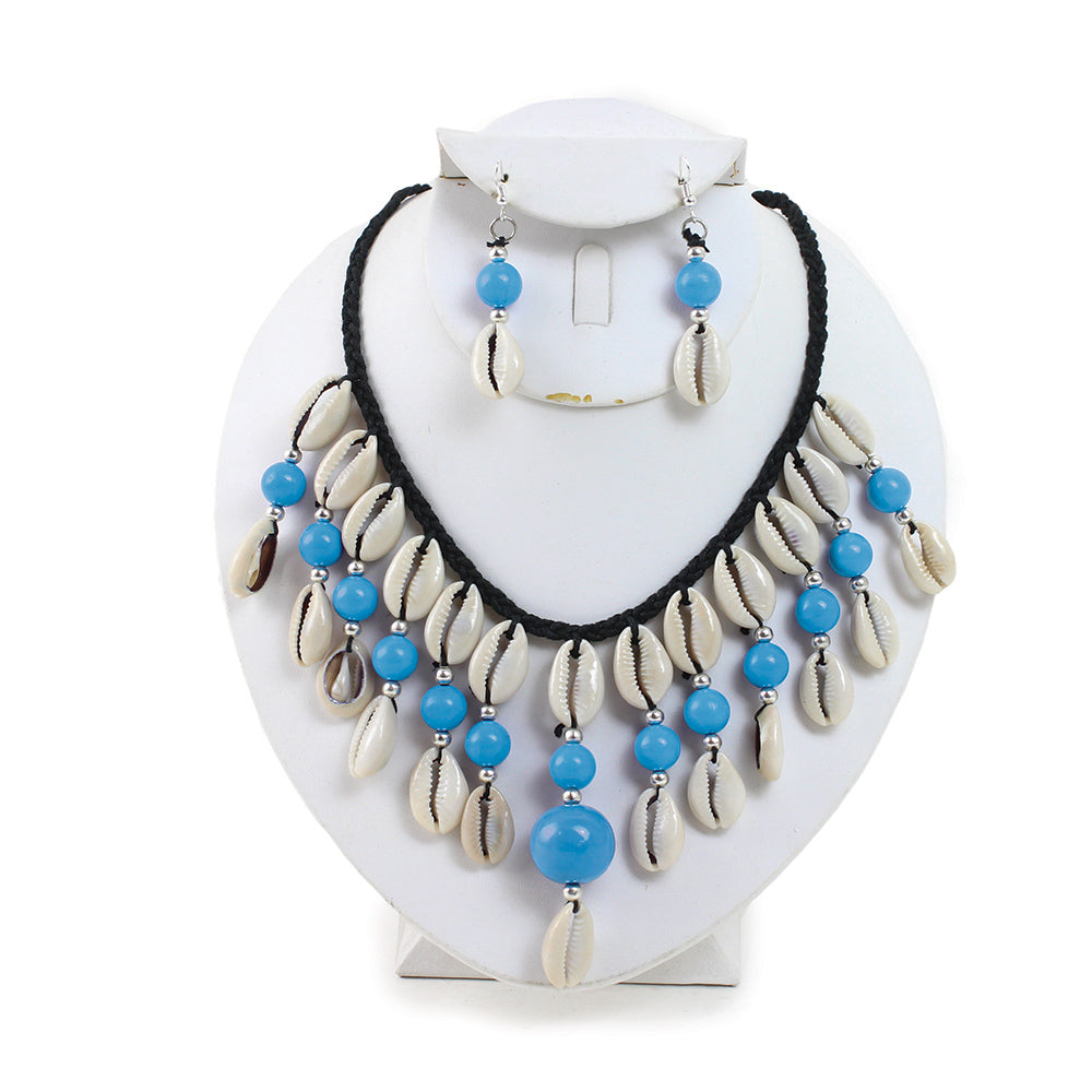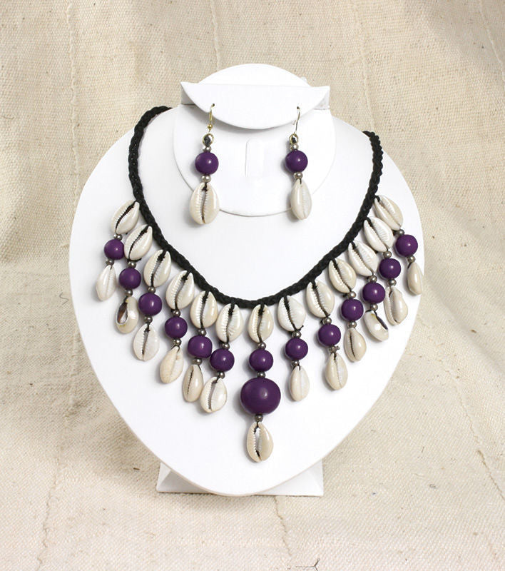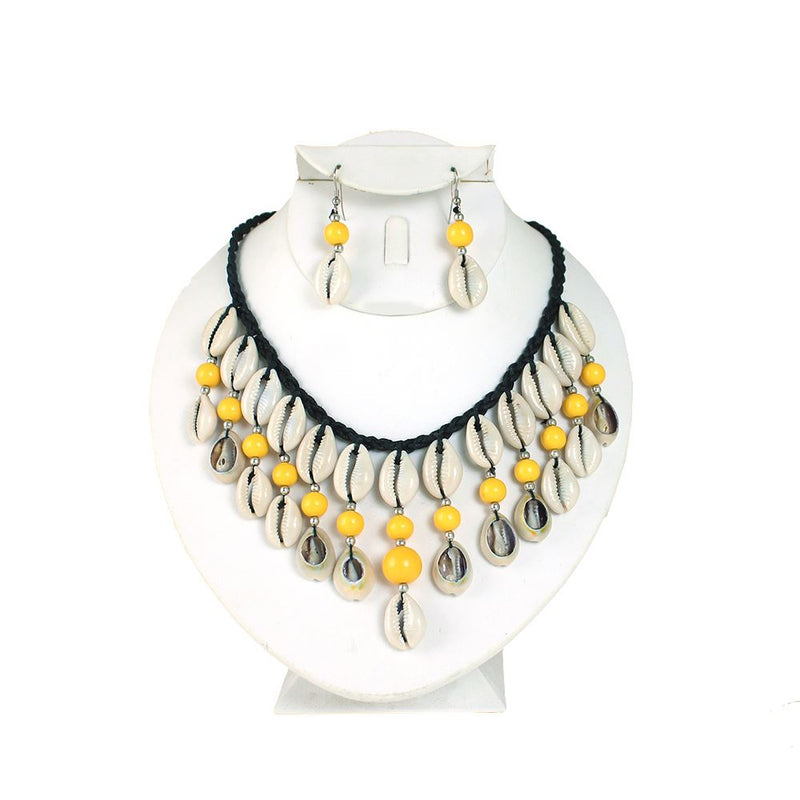 Instantly exotify your look with these beaded cowry shell necklace and earring sets in your favorite choice of color.