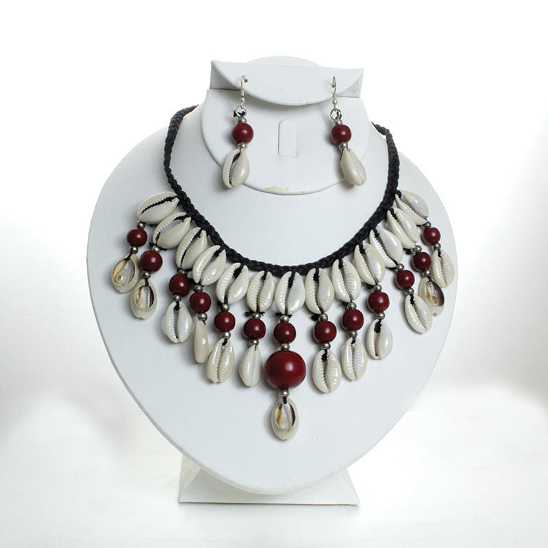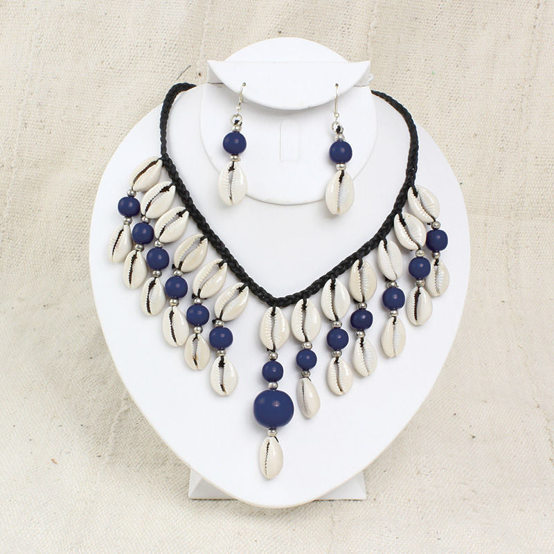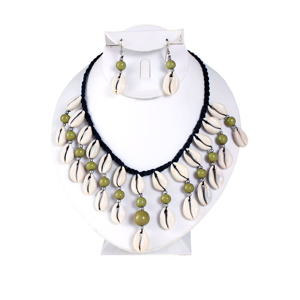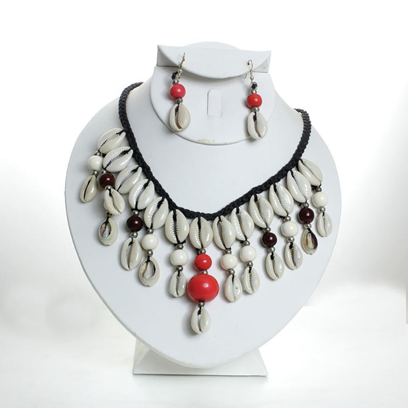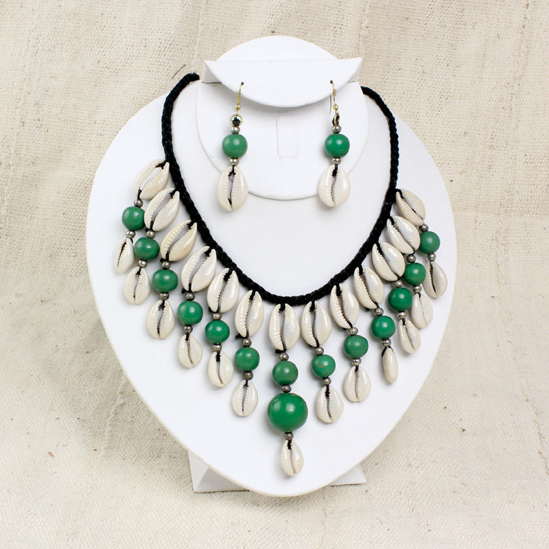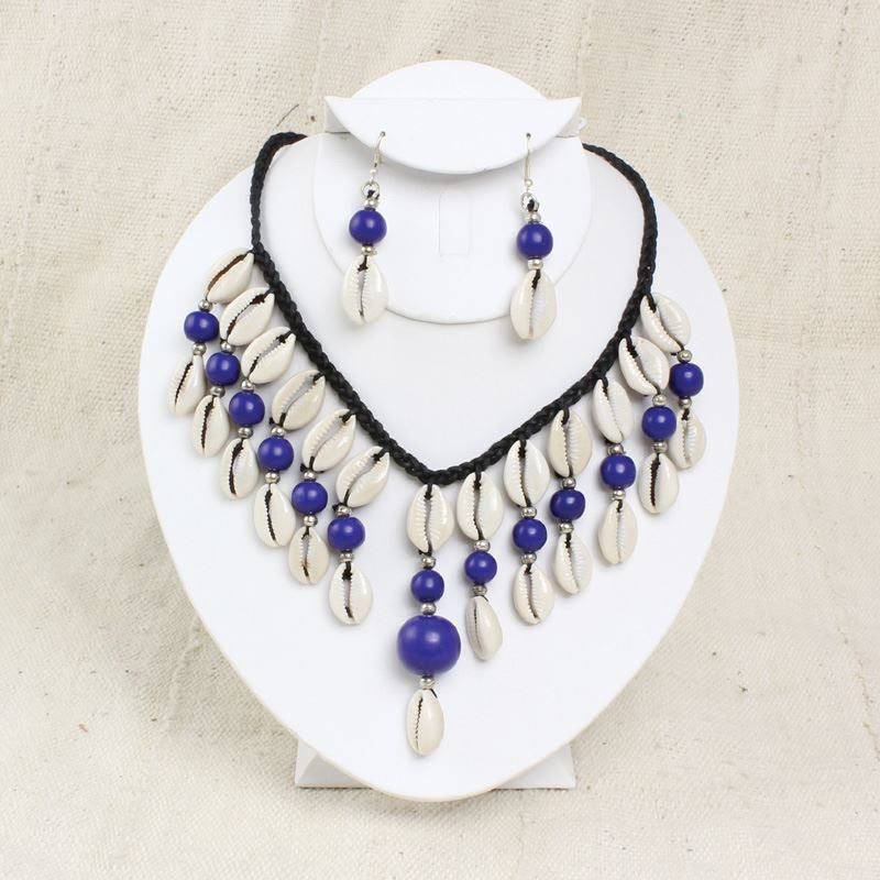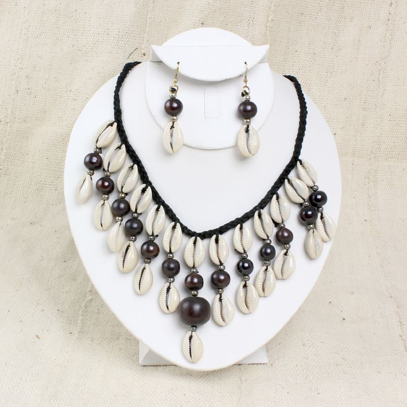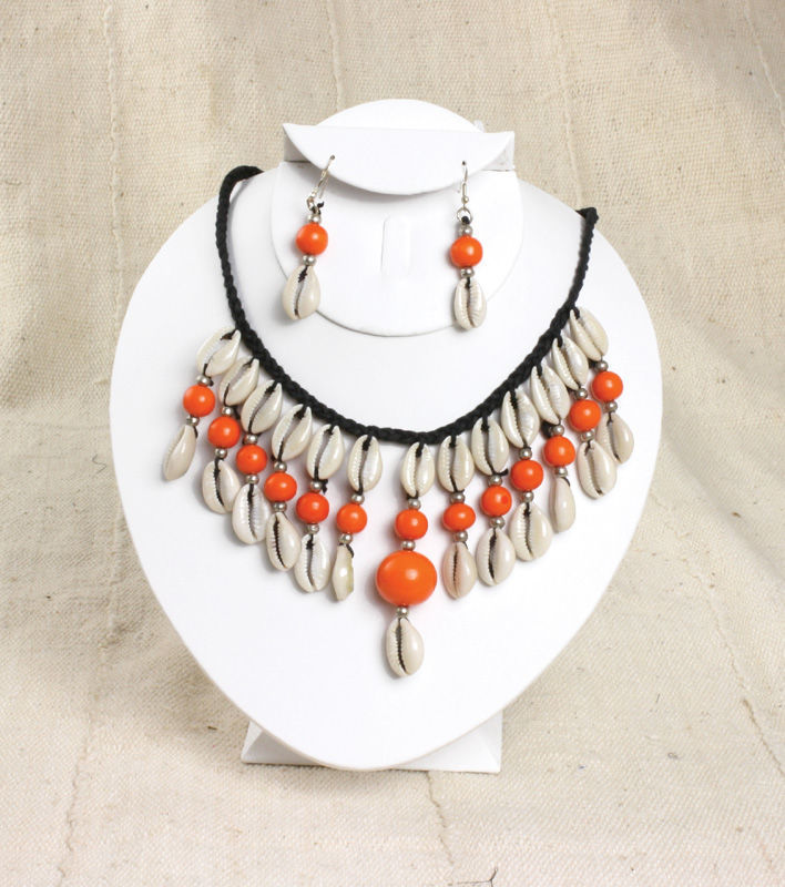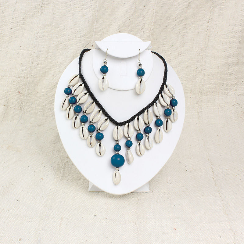 Instantly exotify your look with these beaded cowry shell necklace and earring sets in your favorite choice of color.
