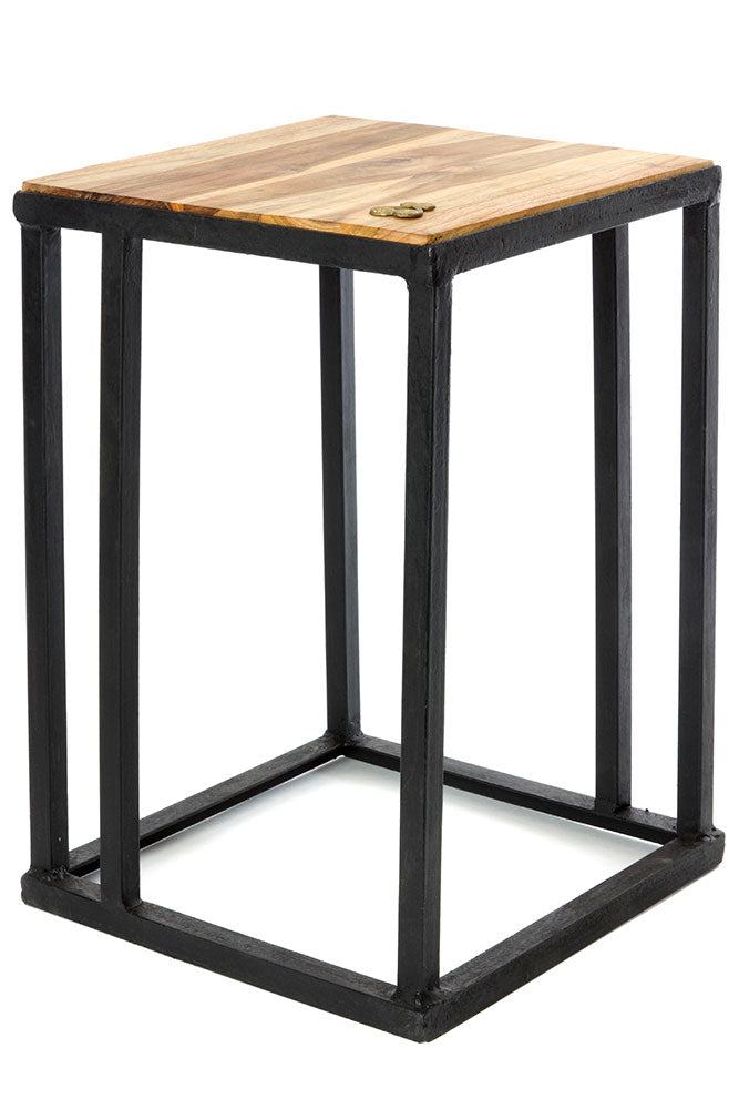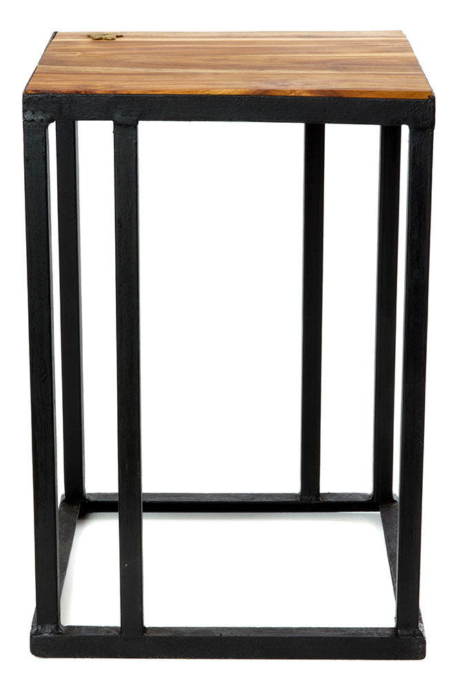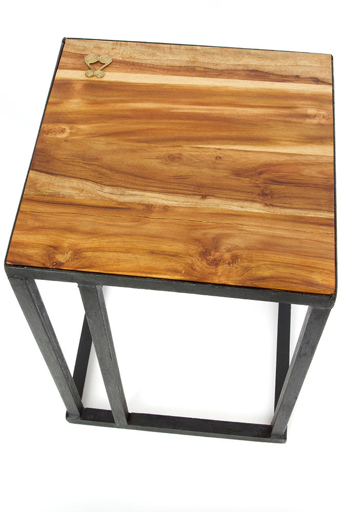 Talented artisans in Ghana create stylish accent tables featuring beautifully grained teak inset in sturdy metal frames. A lost wax brass Sankofa symbol adorns the tabletop.