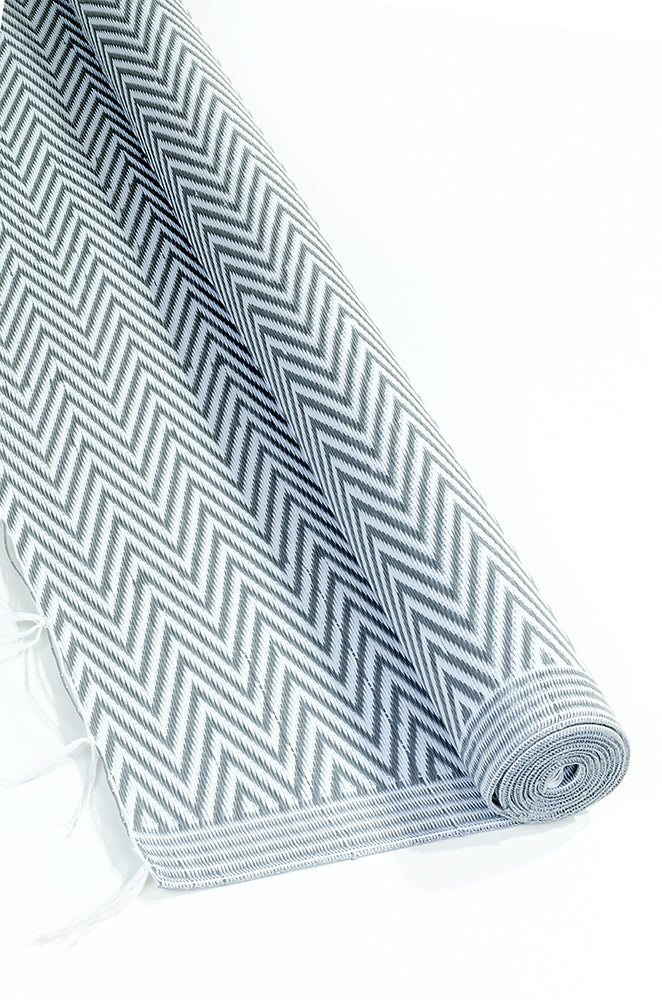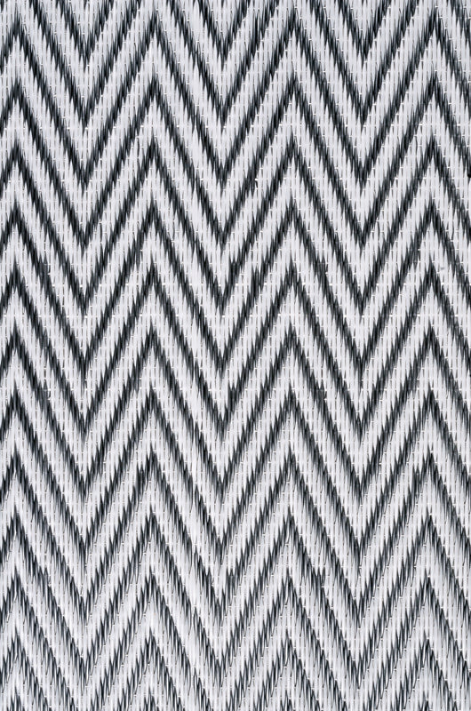 This somber combination of grey and white strands is awakened by an alternating zig zag pattern.