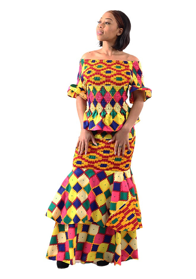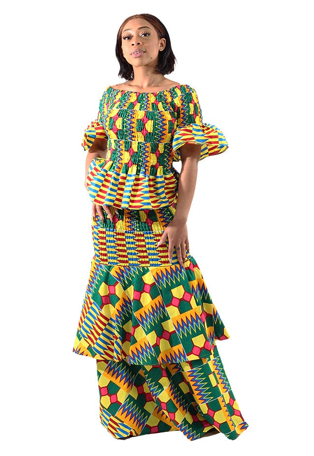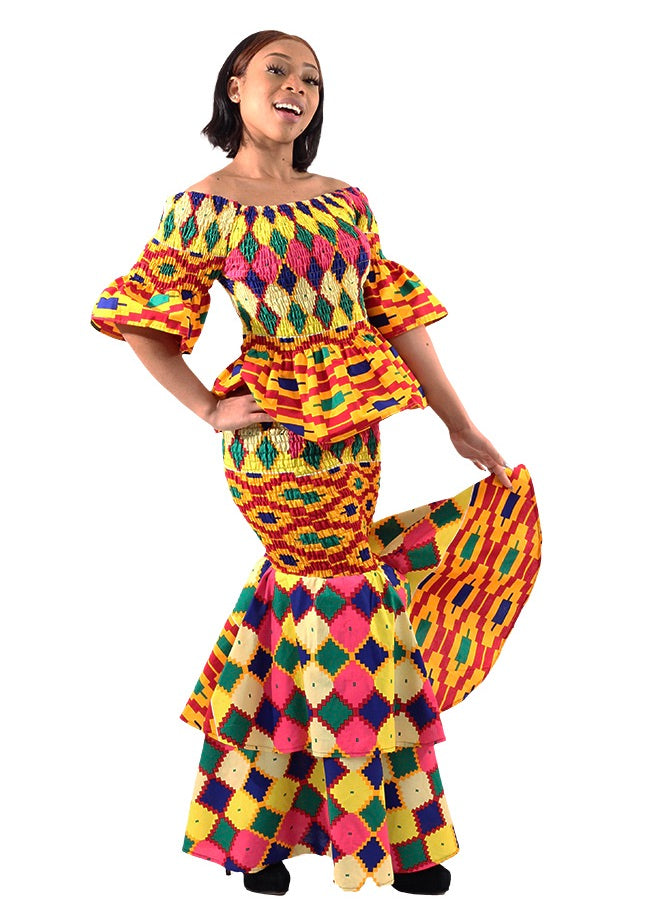Bold and colorful, this Kente 2-Piece Elastic Skirt Set makes a stylish addition to any wardrobe.