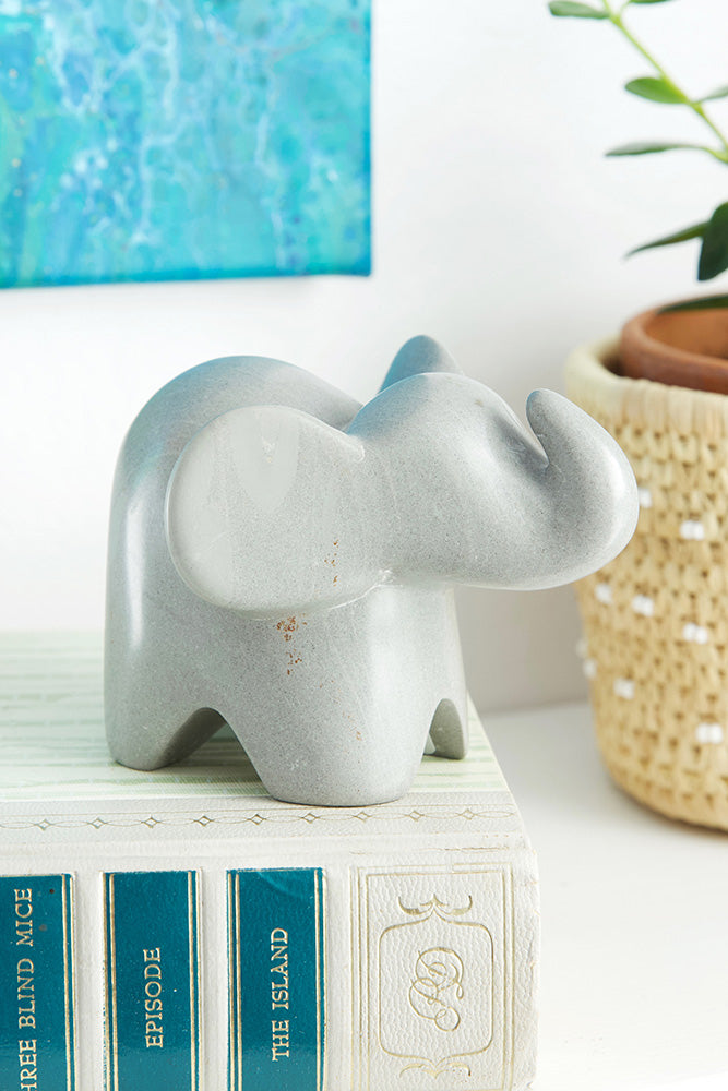 Kenyan artisans showcase naturally occurring grey soapstone in an adorable elephant sculpture.