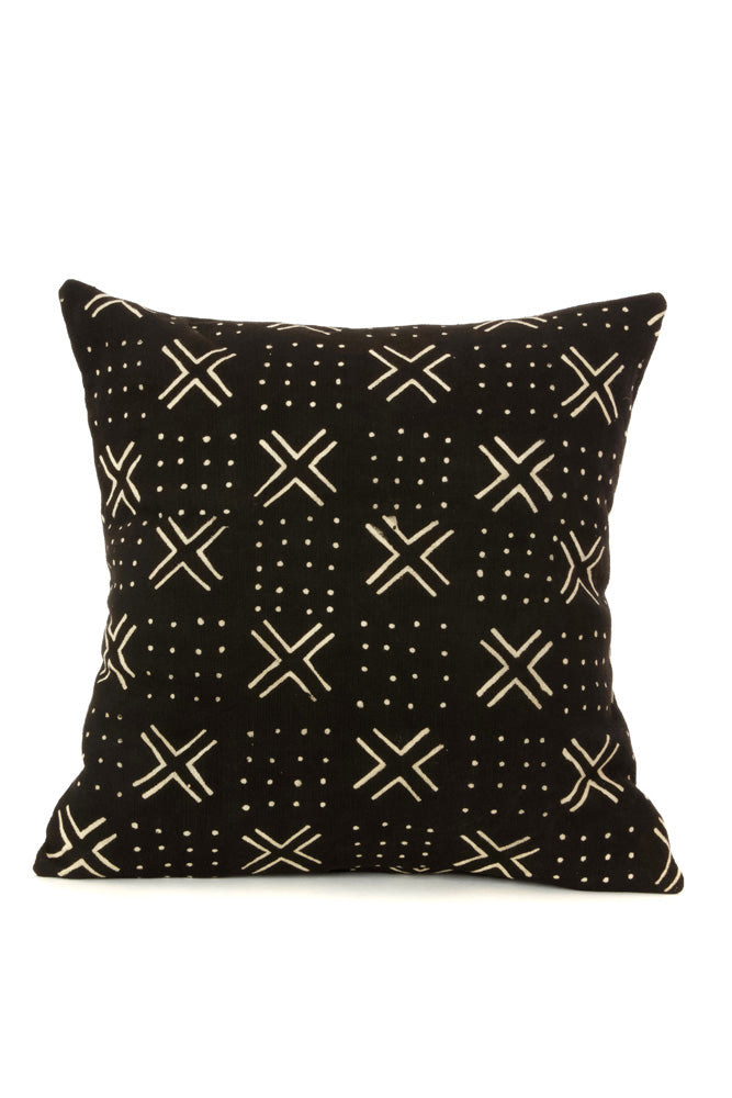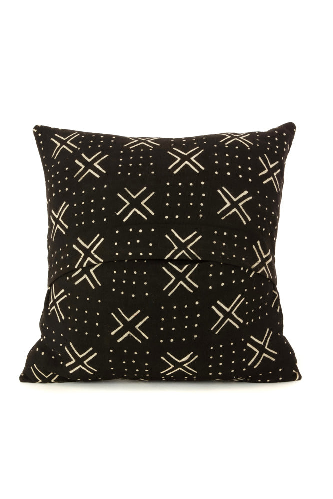 Malian artisans call upon traditional mudcloth techniques to feature a black and white design to this stylish decorative pillow. The back of the pillow is secured by a fold-over closure.
