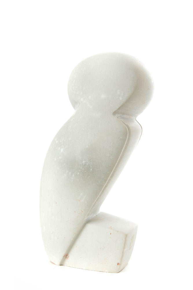 Zimbabwean sculptors carve beautiful white serpentine stone to create this unique abstract owl sculpture.