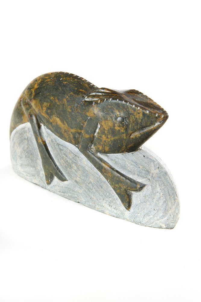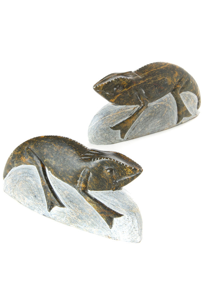 A talented Zimbabwean sculptor hand carves serpentine stone to create this unique chameleon sculpture.