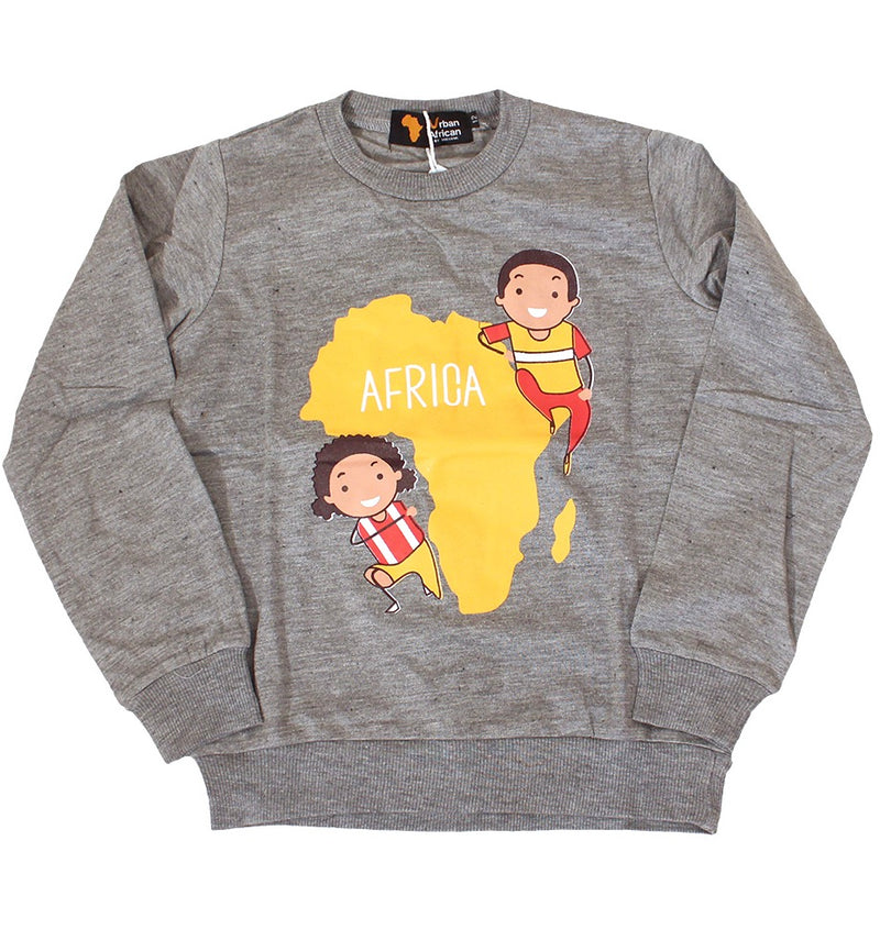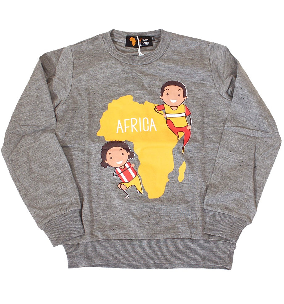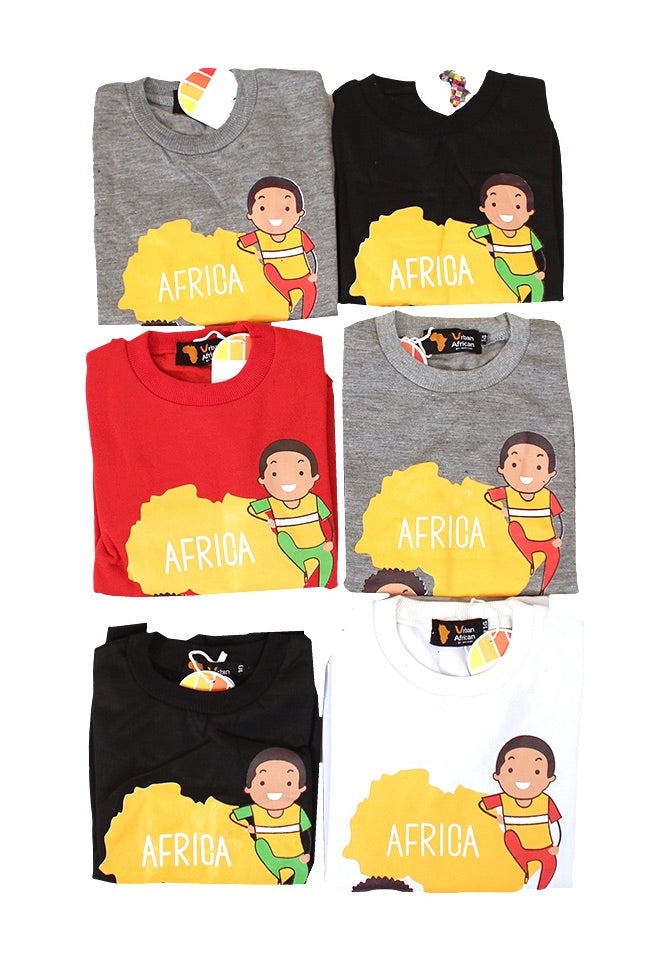 The t-shirts feature an image of African children surrounding the outline of the continent of Africa.