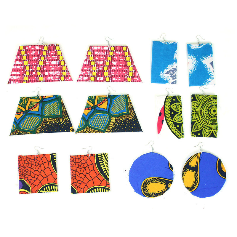 The chunky earrings come in a variety of shapes, colors, and traditional African designs.