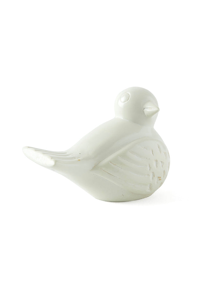 Polished to a smooth finish, each bird sculpture may display small veins of color within the creamy white soapstone.