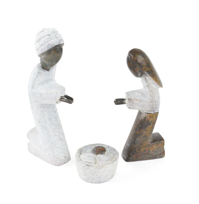 Zimbabwean artist Luke Jimu carves and polishes serpentine stone to create a beautifully simple nativity scene.